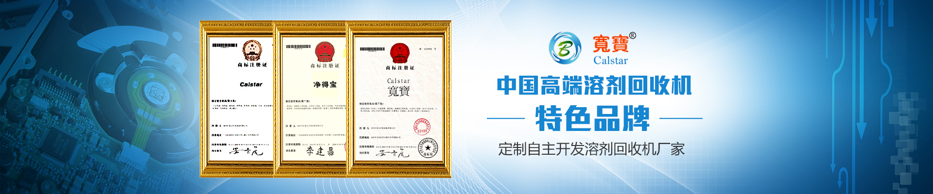 Calstar品牌源于1984年成立的美國加州公司Calstar Associates Company(美國凱勒達有限公司),Cal是加州California英文縮寫, star意為“明星”,Calstar的含義是“加州之星”。Calstar寬寶創業團隊形成于1995年,名稱源“寬以待物,變廢為寶”2001年在大陸成立深圳市寬寶環保設備有限公司,專業從事溶劑回收機的研制和銷售。2003年設立臺灣寬...